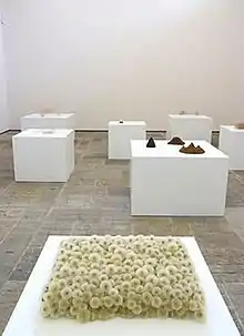 - Löwenzahnkissen (dandelion cushion), 2009, dandelion seeds, 7 x 17 x 14 1/2 inches (18 x 43 x 37 cm)