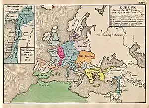 The Northern Crusades[10] or Baltic Crusades[11] were crusades undertaken by the Catholic kings of Denmark and Sweden, the German Livonian and Teutonic military orders, and their allies against the pagan peoples of northern Europe around the southern and eastern shores of the Baltic Sea. Swedish and German campaigns against Russian Eastern Orthodox Christians are also sometimes considered part of the Northern Crusades.[10][12] Some of these wars were called crusades during the Middle Ages, but others, including most of the Swedish ones, were first dubbed crusades by 19th century romantic nationalist historians.