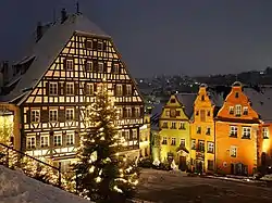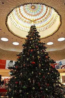Christmas lights (also known as fairy lights, festive lights or string lights) are lights often used for decoration in celebration of Christmas, often on display throughout the Christmas season including Advent and Christmastide. The custom goes back to when Christmas trees were decorated with candles, which symbolized Christ being the light of the world.[1] This custom was borrowed from pagan yule rituals that celebrate the return of the light of the sun as the days grow longer after solstice: the evergreen trees symbolising the renewal and continuance of life in dark times. The Christmas trees were brought by Christians into their homes in early modern Germany.[2][3]
