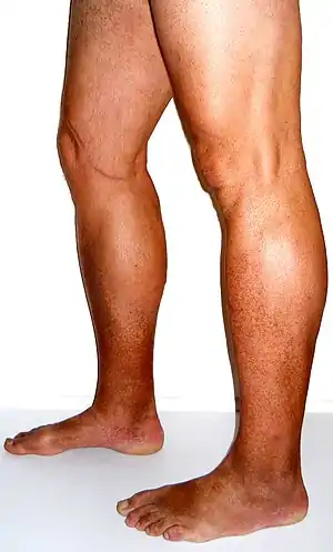 | Mild chronic venous insufficiency, with increased pigmentation of the lower legs. | |