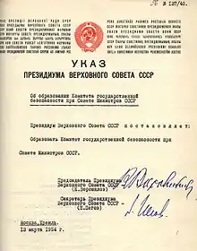 May 30, 1947: Official decision with the expressed purpose of "upgrading coordination of different intelligence services and concentrating their efforts on major directions". In the summer of 1948 the military personnel in KI were returned to the Soviet military to reconstitute foreign military intelligence service (GRU). KI sections dealing with the new East Bloc and Soviet émigrés were returned to the MGB in late 1948. In 1951 the KI returned to the MGB.