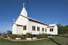 The church building was originally constructed in 1904 in Pine Creek,[lower-alpha 1] which is 760 km north of Tennant Creek, but by the mid-1930s the church had fallen into disrepair.[2] In 1935 Reverend Father W.J. Dew, M.S.C. of the Darwin Parish, was asked by Bishop Francis Xavier Gsell to assess the needs of the Tennant Creek parishioners, who numbered approximately 300.[3] Dew later wrote: