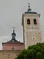 The first four sections of the church are stone. The dome and altar are brick, with limestone trim at the corners. There are four buttresses on each side. The 18th-century section of the dome was designed by Teodoro Ardemans, chief architect of Philip V. The cupola was built by Feliciano, Julian and Casimiro Cornejo, who built churches near Madrid, Toledo and Guadalajara in the second half of 18th century.