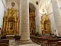 The Chapel, dedicated to the patron of the temple has a beautiful gilded altarpiece restored in the first decade of the century. The image of the Virgin, who occupied the center, and some angels disappeared because, at the beginning of Spanish Civil War (1936–39), suffered the ravages of people from the Popular Front government side. The whole is crowned by a great boost Trinity Baroque. At the bottom, under the niche they occupy the Assumption, a group formed by the Santos Justo y Pastor and another with the Church Fathers, St. Augustine and St. Gregory. Superb size, movement, and polychrome paintings reminiscent of Salzillo in Murcia. In the previous altarpiece of 1537, late Gothic style, there were 12 panel paintings that allude to the life of the Virgin and Jesus, of which 6 are preserved. It measures 1.20 m X 1 m approximately and all are works of Juan Correa de Vivar, which have been restored and declared of cultural interest. The tables are: the Annunciation, the Visitation, the Adoration of the Shepherds, Adoration of the Kings (here recognizes Charles V as King Gaspar), Veronica and The Descent.