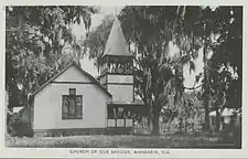 The Church of Our Saviour is an Episcopal church in the Mandarin area of Jacksonville, Florida, U.S. It is located on the St. Johns River at 12236 Mandarin Road. The congregation was founded in 1880 by a group Episcopalians, Church of England members and those from other denominations who wanted to start a new church in the Anglican mode. These people had gathered for Bible readings with Professor Calvin E. Stowe and his famous wife, Harriet Beecher Stowe for many years. They constructed a small but sound church building designed by Ellis and McClure in 1883, which stood until 1964 when Hurricane Dora's winds broke off part of a giant Live Oak and sent it crashing through the church's roof. The Stowe Memorial stained glass window, created by Louis Comfort Tiffany, was completely destroyed. The congregation built a new church in a similar design; it remains an active parish in the Episcopal Diocese of Florida.[1]
