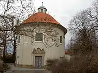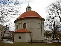 The Church of Saint Roch, located on Olšany Square (Czech: Olšanské náměstí), is the oldest church in present-day Žižkov, a cadastral district of Prague, Czech Republic. The Baroque structure was built between 1680 and 1682 by Jan Hainric, probably according to plans by the renowned French architect Jean Baptiste Mathey.