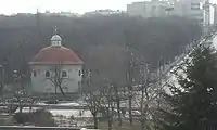 In the construction of the streets of present-day Olšanska Square, part of the original cemetery wall, behind which the Church of St. Roch stood, was demolished. The construction also required the removal of the old rectory. So today is the church stands alone in the middle of a green space. In recent years, the church has undergone reconstruction, including replacement of the roof, and the surrounding park land has been renovated.[1]