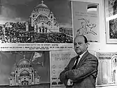 After the king dropped his earlier veto on the decision to stop the further planning on the church, the opposing Club of Architects dropped its critical campaign after they were invited to the patriarch. A critical stage of further work occurred in an unstable society from 1932 to 1935. National antagonisms increased and the state saw nine different governments. Under such circumstances the planned church became even more Byzantized, it became a symbol of a political identity and not only an esthetic and stylistic predilection of its planners. The stylistic transformation of its plans to the imperialistic architectural narration is a testimony to the phenomenon which by far surpassed questioning architecture per se and is a mirror to social and political contexts of the state.[44] With it, the episode during which the church was debated, it bears conclusive witness to the drama behind the international political life of Yugoslavia.[45]