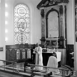 The Church of South India union ceremony happened at St George's Cathedral in Madras on 27 September 1947, a month after India achieved its independence from the United Kingdom. It was formed from the union of the SIUC, (South India United Church itself a union of churches from the Congregational Presbyterian and Reformed traditions); the southern provinces of the (Anglican) Church of India, Pakistan, Burma and Ceylon; and the Methodist Church of South India.[17] The inaugural service was presided by Bishop Rt. Rev. C. K. Jacob, of the Anglican diocese of Travancore and Cochin.[18] As part of it, nine new bishops, drawn from all the traditions, were consecrated to serve with five Anglican bishops already in the office.[18] Each new bishop was ordained with the imposition of hands by the presiding bishop, along with two more Anglican bishops (Rt. Rev. A. M. Hollis and Rt. Rev. G. T. Selwynthe) and six presbyters from the uniting Churches, also laying hands.[18] This reconciliation of the Anglican views with those of the other uniting denominations, on the doctrine of apostolic succession, realized in the formation of the Church of South India, is often cited as a landmark in the ecumenical movement.[19][20][21][18]