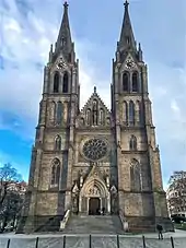 The Church of St. Ludmila (Czech: Kostel svaté Ludmily) is a neo-Gothic Roman Catholic church at Náměstí Míru (Peace Square) in Prague's Vinohrady, built on plans of Josef Mocker in 1888–1892. It is named in honor of St. Ludmila of Bohemia.