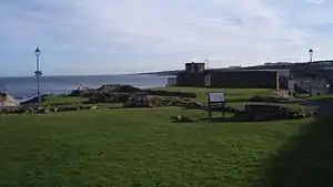 The church is located at Kirkheugh or Kirkhill. This location, where the modern North Street and South Street converge, may have been the original location of the religious site before the construction of a new cathedral building slightly to the west (the remains of which constitute St Rule's Tower) by Robert, Bishop of St Andrews.[22] There are burials in the vicinity of Kirkheugh that pre-date the alleged eighth-century foundation of the monastery, and point to a small religious community from the sixth-century.[23] There were also a number of tenth-century cross-slabs found in the grounds.[24] The church was said by John Lesley to have been pulled down by reforming Protestants in June 1559.[20]