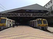 Churchgate (station code: C) is the southern terminus on the Western Line of the Mumbai Suburban Railway. It is located in Churchgate in South Mumbai, Maharashtra.