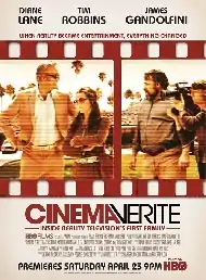 Cinema Verite is a 2011 HBO drama film directed by Shari Springer Berman and Robert Pulcini. The film's main ensemble cast starred Diane Lane, Tim Robbins, James Gandolfini and Patrick Fugit. The film follows a fictionalized account of the production of An American Family, a 1973 PBS documentary television series that is said to be one of the earliest examples of the reality television genre. Principal photography was completed in Southern California.[1] The film premiered on April 23, 2011.[2]
