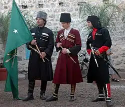 Circassia was a Christian land for 1,000 years, but from the 16th century to the 19th century, they were Islamized under the influence of Crimean Tatars and Ottoman Turks.[5] The Circassians arrived in the Middle East after they were expelled from their homeland in the northwestern Caucasus. The Circassians, who fought during the Russo-Circassian War in the mid-to-late 19th century against the Russian Empire captured the northern Caucasus, were massacred and expelled by Czarist Russia from the Caucasus.[7] The Ottoman Empire, which saw the Circassians as experienced fighters, absorbed them in their territory and settled them in sparsely populated areas, including the Galilee.[8]