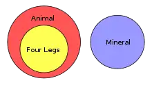 The classic "genus-difference" dictionary definition is in terms of nearest kind (genus proximum) and specific differences (differentia specifica). This genus-difference description may be involved in producing circular definitions of part and kind relationships, for example: "rake: an implement with three or more tines" → "tine: a part of a rake". However, if more specific differences are added, then the effect of circularity may disappear: "rake: a gardening implement with a long handle with three or more tines arranged on crossbar at 90° to the handle and the tines at 90° to both crossbar and handle"; in this case, "tine" is most usefully defined with reference to "rake", but with additional differences providing points of comparison, e.g.: "tine: a sharp spike at the end of a rake". In practice, a pragmatic approach is often taken in considering the effects of circularity in dictionary definitions.[3]