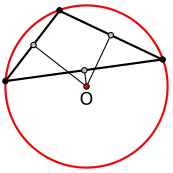 In geometry, the circumscribed circle or circumcircle of a polygon is a circle that passes through all the vertices of the polygon. The center of this circle is called the circumcenter and its radius is called the circumradius.