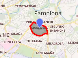 Currently the park is located in the centre of the city. The park is surrounded on all sides by another famous park in Pamplona known as Vuelta del Castillo, which has remained the largest area for greenery in Pamplona throughout the years with no military buildings being built in this area.