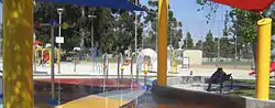 City Terrace Park was developed in 1933 by Works Progress Administration crews. It occupied a piece of 3.5 acres (1.4 ha) terrace that was formed after crews hacked a rugged and barren hill. In 1957, 600,000 cubic yards (460,000 m³) of soil that had been removed from the construction of the Los Angeles Civic Center was transported to the City Terrace County Park. The soil filled a ravine, tripling the park's original acreage. It has swimming, basketball and tennis, plus a playground, a splash pad, picnic areas and a gymnasium. In addition, City Terrace Park hosts many activities for youth and Teens such as cheer, basketball and computer club, as well as activities for adults and families such as ceramics classes and aquatics programs.[6]