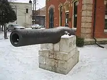 Some of the early decisions regarded city sidewalks and, in 1888, the creation of a fire district. Many meetings regarding the fire district and its boundaries were held at the City and Town Hall. Other early issues were the local liquor and saloon ordinance and the card playing and gambling ordinance. Election day in Rochelle and official polling places were established in 1885, both decisions were made within the walls of the City and Town Hall. In 1893 a lighting system for Rochelle's Washington Street was decided upon in the building.[2] Local Civil War veterans had an 1863 Civil War cannon and 20 cannon balls placed in front of the City and Town Hall in 1899. The pyramid-shaped stack of cannonballs are no longer extant but the cannon remains on the corner of the lot.[2]