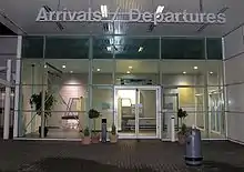 City of Derry Airport (IATA: LDY, ICAO: EGAE), previously known as RAF Eglinton and Londonderry Eglinton Airport, is a regional airport located 7 mi (11 km) northeast of Derry, Northern Ireland.[3] It is located on the south bank of Lough Foyle, a short distance from the village of Eglinton and 8 mi (13 km) from the city centre.