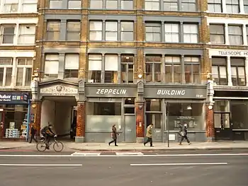 On the night of 8 September 1915, Zeppelin L13 commanded by Kapitänleutnant Heinrich Mathy attacked London, and two of his bombs hit Messrs Frank Stadelman's warehouse at 59–61 Farringdon Road. Falling masonry from the building did considerable damage to the 6th Londons' drill hall behind.[73][74]