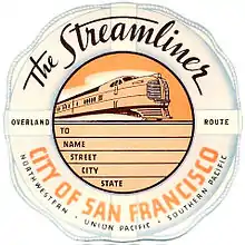 The City of San Francisco was a streamlined through passenger train which ran from 1936 to 1971 on the Overland Route between Chicago, Illinois and Oakland, California, with a ferry connection on to San Francisco. It was owned and operated jointly by the Chicago and North Western Railway (1936–55), Chicago, Milwaukee, St. Paul and Pacific Railroad (1955-71), the Union Pacific Railroad, and the Southern Pacific Railroad. It provided premium extra fare service from Chicago to San Francisco when introduced in 1936 of 39 hr 45 min each way.