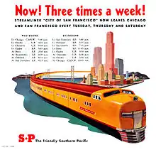 - October 1, 1946: Service was increased to thrice weekly departures from both Chicago and San Francisco made every Tuesday, Thursday and Saturday evening.[29]