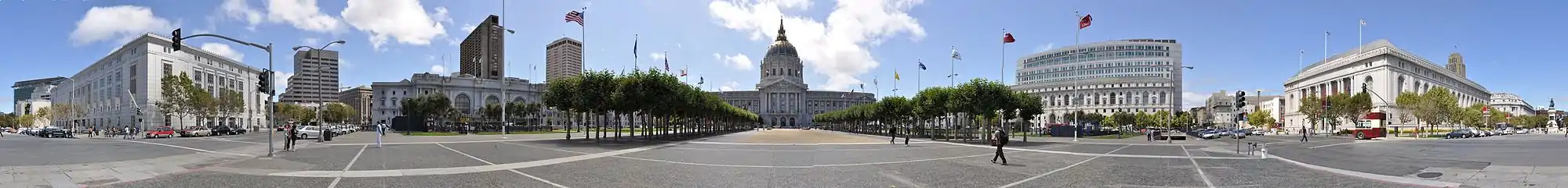 ![]() San Francisco Civic Center, looking west along UN Plaza to City Hall | |
