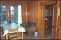 - The ranger's residence was built the in 1933. The residence plan was chosen by District Ranger Francis Williamson out of a group of Weyerhaeuser plans entitled Your Future Home. With the exception of exterior building materials, the residence was constructed to the plan's specifications. It is a 1 1⁄2-story, wood-frame building with a concrete foundation. It has a wood-shingled exterior and high gable roof. Windows are six-over-six panes in double-hung sashes with slab-wood frames giving the appearance of being notched and joined logs. There is a small front porch that protects the south-facing front entrance. The interior rooms of the ranger's residence have varnished fir-paneling with a large stone fireplace and built-in book cases in the living room. The residence has simple furnishings, including living room sofa, wooden chairs, kitchen and dining room tables, and beds for eight guests.[7][8]