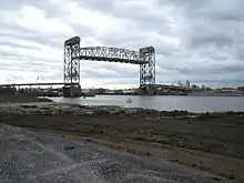The Claiborne Avenue Bridge, officially known as the Judge William Seeber Bridge, is a vertical lift bridge in New Orleans, Louisiana over the Industrial Canal. It was built by the Louisiana Department of Highways (later renamed the Department of Transportation and Development) and opened to vehicular traffic in 1957. The bridge has suffered numerous disasters: A barge hit the bridge in 1993, Hurricane Katrina damaged it in 2005, and a car plunged into the canal in 2008 due to a malfunction.