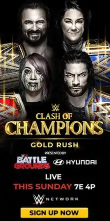 Clash of Champions is a recurring pay-per-view (PPV) event first produced by WWE in 2016. Similar to its predecessor, Night of Champions, the theme of the event is that every active championship for the brand divisions featured at the event are defended. The 2020 event featured the Raw and SmackDown brands and their respective titles. These included the four championships on Raw—the WWE Championship, the Raw Women's Championship, the United States Championship, and the Raw Tag Team Championship—the four championships on SmackDown—the Universal Championship, the SmackDown Women's Championship, the Intercontinental Championship, and the SmackDown Tag Team Championship—as well as the non-exclusive 24/7 Championship.[2] The WWE Women's Tag Team Championship was also originally scheduled to be defended but the match was canceled just prior to the event as the defending champions were not medically cleared to compete.[3] The 2019 event had also featured the 205 Live brand and its Cruiserweight Championship, but that brand and title were merged under the NXT umbrella in late 2019.[4]