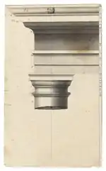 Following the examples of Vitruvius and the five books of the Regole generali di architettura sopra le cinque maniere de gli edifici by Sebastiano Serlio published from 1537 onwards, Giacomo Barozzi da Vignola produced an architecture rule book that was not only more practical than the previous two treatises, but also was systematically and consistently adopting, for the first time, the term 'order' to define each of the five different species of columns inherited from antiquity. A first publication of the various plates, as separate sheets, appeared in Rome in 1562, with the title: Regola delli cinque ordini d'architettura ("Canon of the Five Orders of Architecture").[6] As David Watkin has pointed out, Vignola's book "was to have an astonishing publishing history of over 500 editions in 400 years in ten languages, Italian, Dutch, English, Flemish, French, German, Portuguese, Russian, Spanish, Swedish, during which it became perhaps the most influential book of all times".[7]