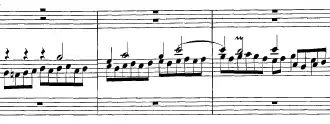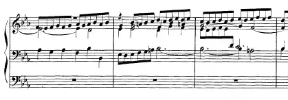 Examination of the original manuscript suggests that the Kyrie-Gloria and larger catechism chorale preludes were the first to be composed, followed by the "St Anne" prelude and fugue and the manualiter chorale preludes in 1738 and finally the four duets in 1739. Apart from BWV 676, all the material was newly composed. The scheme of the work and its publication were probably motivated by Georg Friedrich Kauffmann's Harmonische Seelenlust (1733–1736), Conrad Friedrich Hurlebusch's Compositioni Musicali (1734–1735) and chorale preludes by Hieronymus Florentinus Quehl, Johann Gottfried Walther and Johann Caspar Vogler published between 1734 and 1737, as well as the older Livres d'orgue, the French organ masses of Nicolas de Grigny (1700), Pierre Dumage (1707) and others.[10][11] Bach's formulation of the title page follows some of these earlier works in describing the particular form of the compositions and appealing to "connoisseurs", his only departure from the title page of Clavier-Übung II.[12]