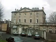 The house was built between 1746 and 1750 for the wealthy merchant and philanthropist Paul Fisher, by Isaac Ware, a nationally renowned architect and translator of Palladio's works. Thomas Paty, later a notable Bristol architect, worked as a mason during its construction.[2] The house stands on a steep slope, so that while only three stories face the street, the five-bay garden front is four stories tall with low wings (both raised from one story to two during the nineteenth century) and a double flight of steps down to the garden. There is a World War II Air raid shelter accessible beneath the steps which is visible from the South Façade. Before 1850, the far end of the garden was sold and built into the Bellevue terrace.