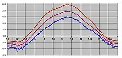 | Night | 16.1 | 14.3 | 12.1 | 9.7 | 7.7 | 6.6 | 7.2 | 9.1 | 11.3 | 13.5 | 15.6 | 16.8 |