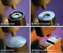 In addition, the choice of the clinching tools highly affects the joining strength and the absorbed energy of a clinched connection other than the joining force. Rectangular tools, for example, require lower joining forces than round tools since the material shearing, while among the round clinching tools split dies require the minimum joining force and the largest interlock.[1]