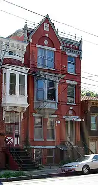 Development continued in the 1880s, with some earlier construction being demolished to make way for newer houses. Builders began moving beyond the Italianate style, experimenting with the Richardsonian Romanesque and Queen Anne styles. Hope Baptist Church, at the west end of the McPherson Terrace row on the north side of Clinton west of Judson, is the foremost Romanesque building in the district. The Queen Anne style is responsible for the oriel windows found at 5 Wilson Street (on the North Pearl corner), the row of 152½, 154 and 154½ (identical buildings with arched windows on the first story) and 168 Clinton, with a projecting gabled pavilion. The two styles blend in a row faced in stone between Lexington and Robin streets. The Gothic Revival style made an appearance in 1883 when the former St. Luke's Methodist Church was built at the northwest corner of the Lexington intersection.[1]