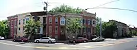 The 70 acres (28 ha) delineated by this boundary are urban and mostly developed, with a few vacant lots. There are 576 buildings in it. Only 20 of them are considered non-contributing, most of them modern commercial intrusions like supermarkets and gas stations. Of the 556 contributing buildings, 530 (or 92% of the total) are two- or three-story brick rowhouses, built over a century and reflecting different architectural styles. The remaining historic buildings include the theater, churches, an old police station and two schools.[1]