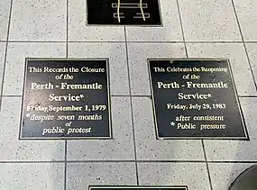 The railway passenger service between Perth and Fremantle was closed from 2 September 1979 to 23 July 1983 by the Court government of Western Australia.