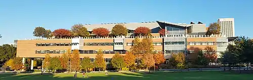 The building serves as an interdisciplinary facility to encourage collaboration and technologically enhanced teaching and learning.[1][2] The Clough Commons, which was built with LEED certification in mind, contains various sustainability features and a roof garden, demonstrating Georgia Tech's commitment to sustainable design.[1] In August 2012, the building, staged as a building within Googleplex, was a major piece of the set of the 2013 film The Internship.[3]