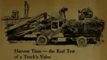 References to the Clydesdale horse were rarely used in Clydesdale's advertising, although some examples showing an image of such horses are known.[16] After World War I, Clydesdale tried to use their association with the London General Omnibus Company for promotion, cashing in on that company's greater experience in building tough military vehicles. They advertised their trucks as "practically a duplicate" of LGO's wartime truck.[17] They also emphasised ruggedness in their advertisements aimed at the farming market.[18]