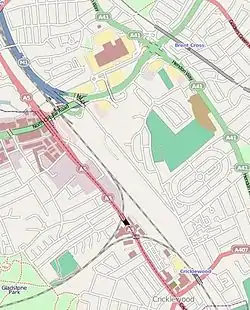 It stretches south to parts of the Cricklewood area, and is based on a Barnet "Development Framework" report[4] that also included West Hendon further north, but that area has since been developed independently.[5]