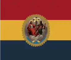Barițiu notes that the "white-blue and red tricolor" was used by the Romanian Commission of Sibiu (Nagyszeben), which constituted a "grave error". This flag, he argues, was designed by youth unaware of the "lawful Transylvanian colors", and was even seen by some Romanians as closely resembling the Russian or Serbian flags.[136] Over the following months, blue-yellow-red replaced other variants—either under the influence of flags used in the Wallachian revolution, or because yellow was a Habsburg color.[137] In Habsburg and Hungarian sources, this flag was depicted as a direct successor of the 1765 colors, indicating Romanian "autochtonism" after other Transylvanian communities had embraced ethnic flags.[138] According to museographer Elena Pălănceanu, this tricolor was paraded during the May assembly by the anti-Hungarian folk army gathered by Avram Iancu, and later flown by his guerrilla units throughout the Apuseni Mountains.[139] One variant, featuring an icon and tricolor bordure, is viewed by some historians as one of Iancu's battle flags.[140]