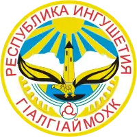 The name of the republic appears above the seal in Russian (Республика Ингушетия) and below the seal in Ingush (ГӀалгӀай Мохк).