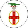 | Blazon | Argent on a Cross Gules five pine-apples slipped OR |