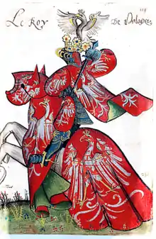 | Blazon | Gules, an eagle argent, armed, crowned and beaked or, langued argent |