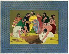 According to the King James Version, Genesis 37:3 reads, "Now Israel loved Joseph more than all his children, because he was the son of his old age: and he made him a coat of many colours."[2]