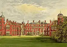 There has been a manor house on the site since the 12th century. The current building consists of a pair of 16th-century Tudor wings and a later classical central block, the 'Cross Wing'.[4] Alterations were made by Sir William Chambers, c. 1767–70[5] The most notable feature of the interior is the two-storey Gilt Hall, c, 1770–81.[6] The fourth earl of Darnley, who inherited in 1781, employed the architect James Wyatt extensively.[7] The landscape designer Humphry Repton was hired to draw up a plan for the estate and two of his sons designed features of the building.