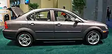 Coda Automotive re-engineered an existing gasoline-powered vehicle, the Hafei Saibao, in order to reduce the cost of building the Coda electric car from the ground-up.[11] The car was designed by Pininfarina and unveiled at the 2004 Beijing Auto Show.[12] The base Saibao chassis is based on the late-1990s Mitsubishi Lancer.[13] Coda engineers modified the design to improve safety and successfully completed two of the tests necessary to gain Federal Motor Vehicle Safety Standards certification in the second quarter of 2009; the full frontal impact test at 35 miles per hour (56 km/h) and the 40% offset test at 45 miles per hour (72 km/h). The Coda EV debuted in 2008, as the Miles XS 200, a car show prototype, by Coda parent company Miles Electric Vehicles.[14][3]