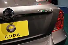 The Coda is a four-door, four passenger electric car once manufactured by Coda Automotive. After being rescheduled several times, deliveries to retail customers in the United States began in March 2012.[5] The car was sold exclusively in California and only 117 units were delivered by April 2013.[6]